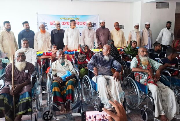 প্রতিবন্ধীদের মাঝে হুইল চেয়ার বিতরণ করেন এমপি মিজানুর রহমান