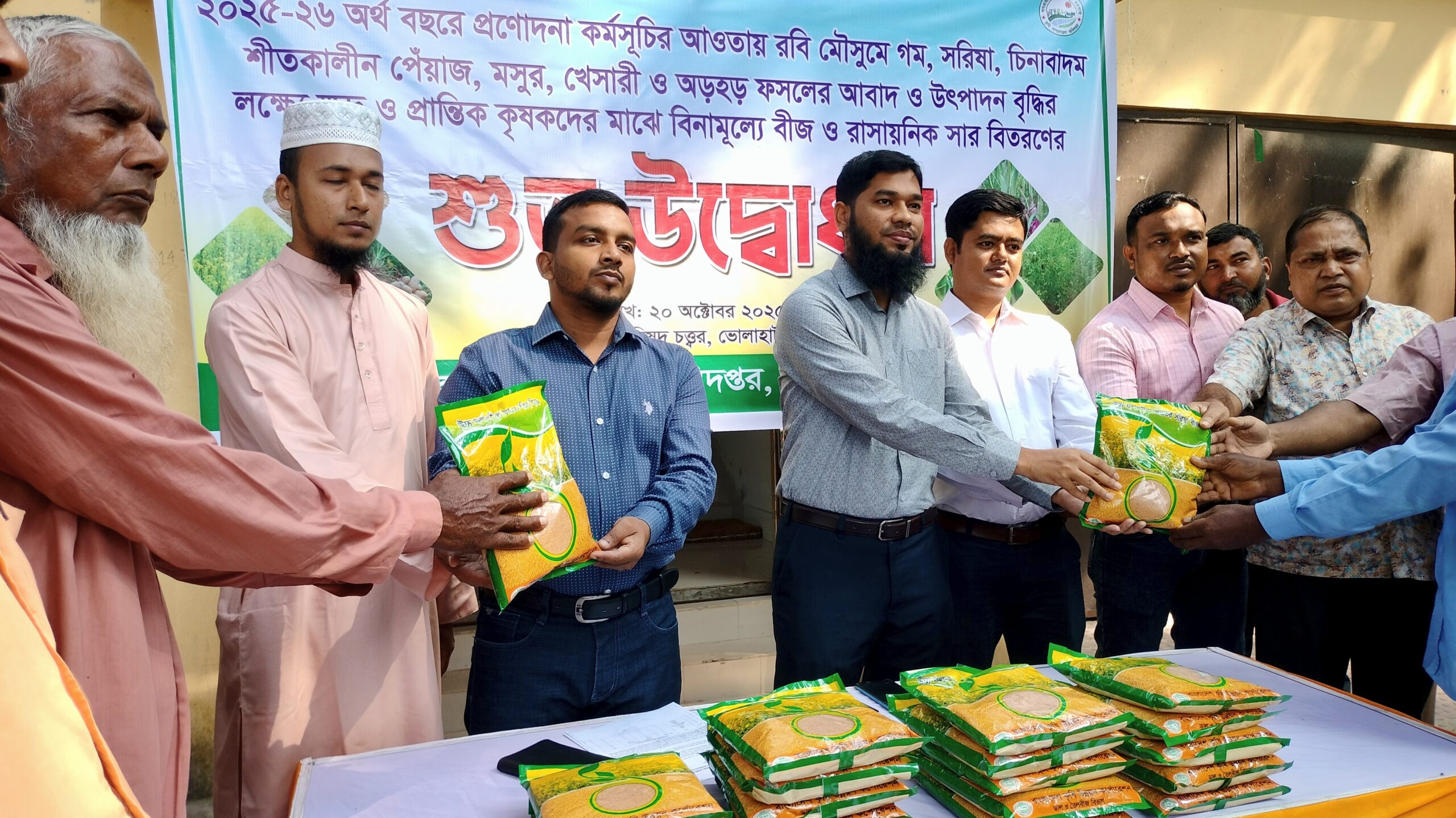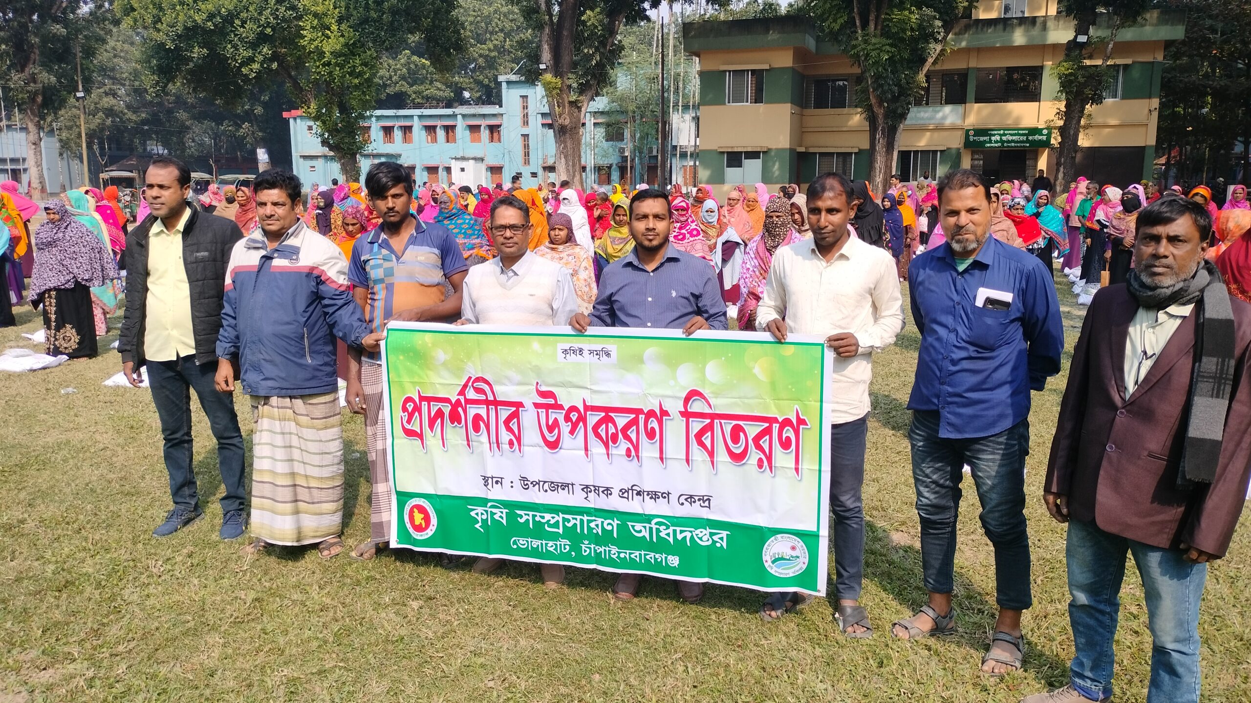 ভোলাহাটে প্রদর্শনীর উপকরণ বিতরণ