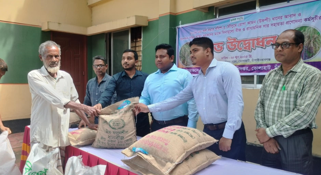 নাচোলে বিনামূল্যে কৃষকদের মাঝে গমবীজ সংরক্ষণ সাইলো বিতরণ