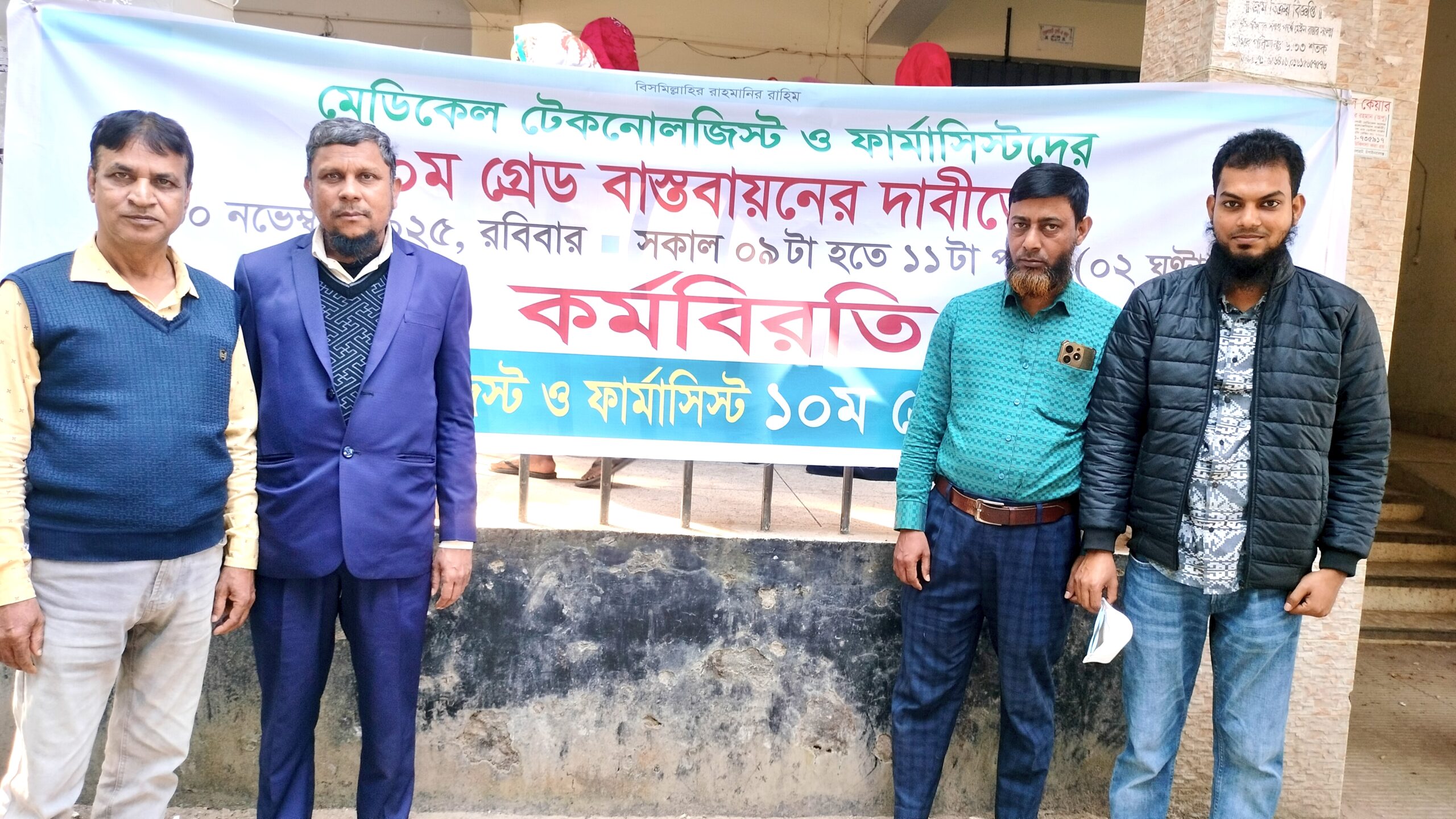 ভোলাহাটে মেডিকেল টেকনোলজিস্ট ও ফার্মাসিস্টদের কর্মবিরতি