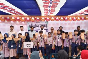 নুর মোহাম্মদ, ব্যুরো প্রধান,গোমস্তাপুর:চাঁপাইনবাবগঞ্জের গোমস্তাপুর রহনপুর পুনর্ভবা নদী থেকে মোতাসিম (১৪)এক মাদ্রাসা শিক্ষার্থীর লাশ উদ্ধার করেছে ফায়ার সার্ভিস। বৃহস্পতিবার দুপুরে রহনপুর রেলস্টেশন সংলগ্ন রেলব্রিজের নীচ থেকে তার মৃতদেহ উদ্ধার করে রাজশাহী ফায়ার সার্ভিসের একটি ডুবুরি দল। সে রাজশাহীর গোদাগাড়ী উপজেলার মোহনপুর দরগাপাড়া গ্রামের ইসমাইল হোসেনের ছেলে। সে রাজশাহী মহানগরীর একটি মাদ্রাসার অষ্টম শ্রেণীর ছাত্র। রহনপুর ফায়ার সার্ভিসের স্টেশন অফিসার মাহতাবউদ্দিন জানান,রাজশাহী মহানগরীর একটি মাদ্রাসার কয়েকজন শিক্ষার্থী কমিউটার ট্রেন যোগে বৃহস্পতিবার সকাল ১১টার দিকে রহনপুর এসে পৌঁছে। ট্রেন থেকে নেমে তারা রেল স্টেশনের পার্শ্ববর্তী পুনর্ভবা নদীতে গোসল করতে নামে। এসময় মোতাসিম নদীর পানিতে তলিয়ে যায়। পরে রাজশাহী ফায়ার সার্ভিসের ডুবুরি দল প্রায় ঘন্টাখানেক চেষ্টা করে নদী থেকে তার লাশ উদ্ধার করে। পরে তার লাশ পরিবারের নিকট হস্তান্তর করা হয়েছে বলে তিনি জানান। গোমস্তাপুর থানার ওসি খাইরুল বাশার জানান, এ ঘটনায় থানায় একটি অপমৃত্যুর মামলা দায়ের করা হবে।