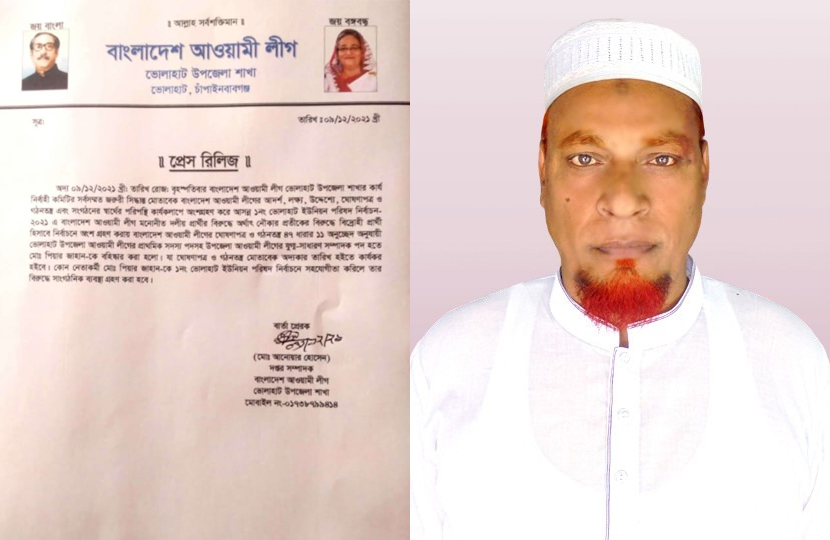 গত ১৪ ফ্রেব্রুয়ারি ‘দেশ টিভি’ অনলাইন নিউজ পোর্টালসহ অন্যান্য পত্রিকায় ‘আওয়ামী লীগ নেতাদের নিয়ে ইউএনওর আইনশৃঙ্খলা সভা’ শীর্ষক শিরোনামে প্রকাশিত সংবাদটি আমার দৃষ্টি গোচর হয়েছে। প্রকাশিত সংবাদের আমার অংশের তীব্র প্রতিবাদ জানাচ্ছি। সংবাদে আমাকে ভোলাহাট উপজেলা আওয়ামীলীগের যুগ্ম সম্পাদক বলা হয়েছে। বিষয়টি সঠিক নয়। আমি ২০২১ সালে ইউনিয়ন পরিষদ নির্বাচনে আওয়ামী লীগ প্রার্থীর বিপরীতে স্বতন্ত্র প্রার্থী হিসেবে নির্বাচনে অংশগ্রহণ করি। এবং বিপুল ভোটে জয় লাভ করে গণপ্রজাতন্ত্রী বাংলাদেশ সরকারের সকল উন্নয়নমূলক এজেন্ডা বাস্তবায়ন করছি। ফলে উপজেলা আওয়ামীলীগের দপ্তর সম্পাদক মোঃ আনোয়ার হোসেন স্বাক্ষরিত ৯ডিসেম্বর /২০২১ খ্রিস্টাব্দে আমাকে দলের শৃঙ্খলা ভঙ্গের অভিযোগে লিখিত ভাবে দলের যুগ্ম সাধারণ সম্পাদকসহ যাবতীয় পদ থেকে বহিস্কার করেন। এমন কি ভোলাহাট উপজেলা ব্যাপী মাইকিং করে আমার বহিস্কারের বিষয়টি প্রচারনা চালায়। সে সময় থেকে আমি আওয়ামী লীগের সকল কার্যক্রমের বাইরে আছি। আমার সাথে আওয়ামী লীগের কোন সম্পর্ক নেই। আমি ভোলাহাট ইউনিয়ন পরিষদের চেয়ারম্যান হিসেবে সরকারের সকল উন্নয়নমূলক কার্যক্রম বাস্তবায়ন করতে নিষ্ঠার সাথে দায়িত্ব পালন করে আসছি। সরকারের নিয়মানুযায়ী বিভিন্ন উন্নয়নমূলক কাজের অংশ হিসেবে একজন স্বতন্ত্র চেয়ারম্যানের দায়িত্ব পালনে গত ১৩ ফেব্রুয়ারি উপজেলা পরিষদের জনগুরুত্বপূর্ণ জন্মনিবন্ধন ও আইন শৃঙ্খলা সভায় উপস্থিত ছিলাম। জনস্বার্থে সরকারের এজেন্ডা বাস্তবায়ন করি। আমার বিরুদ্ধে প্রকাশিত সংবাদটি মিথ্যা বানোয়াট ভিত্তিহীন ও উদ্দেশ্য প্রণোদিত। আমি প্রকাশিত সংবাদের আমার অংশের তীব্র প্রতিবাদ ও নিন্দা জানাচ্ছি।