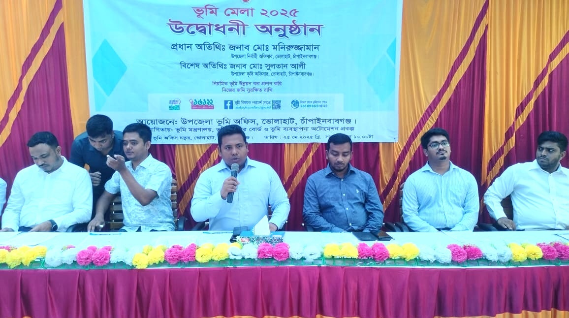 স্টাফ রিপোর্টার: ‘নিয়মিত ভূমি উন্নয়ন কর প্রদান করি, নিজের জমি সুরক্ষিত রাখি’ প্রতিপাদ্যে চাঁপাইনবাবগঞ্জের ভোলাহাট উপজেলায় ‘ভূমি মেলা ২০২৫’ এর উদ্বোধন অনুষ্ঠিত হয়েছে। রোববার (২৫ মে) সকাল ১০ টায় উপজেলা ভূমি অফিস চত্বরে মেলার উদ্বোধন করা হয়।