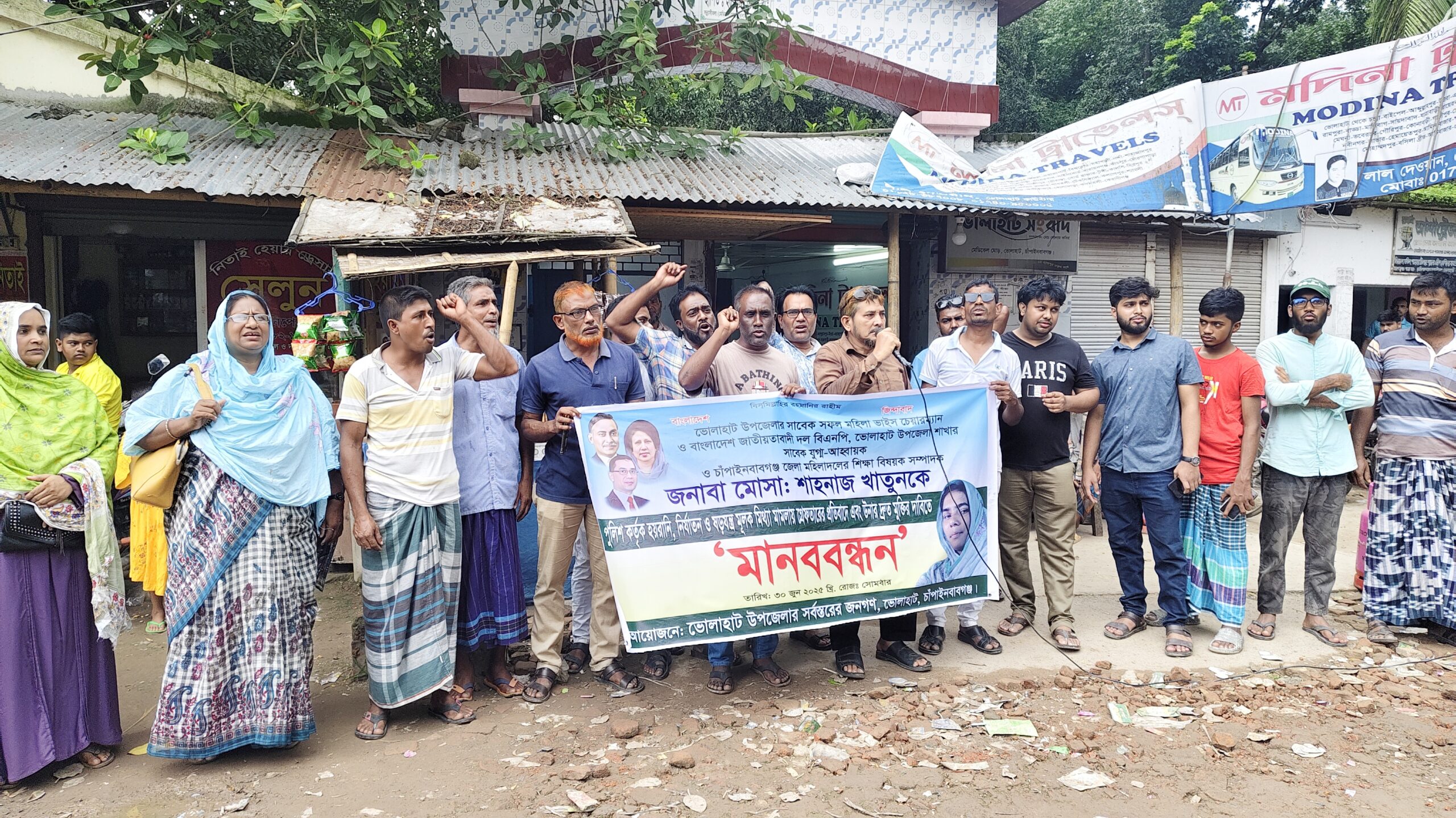 সোমবার (৩০ জুন) বেলা সাড়ে ১১ টার দিকে ভোলাহাট প্রেসক্লাবের সামনে এই মানববন্ধন অনুষ্ঠিত হয়। মানববন্ধনে বিএনপি নেতা মো. খিজির হায়াত মোল্লার সভাপতিত্বে বক্তব্য রাখেন , সাবেক ওয়ার্ড সভাপতি বাকিউর রহমান বারী, বিএনপির উপজেলা স্বেচ্ছাসেবক দলের নেতা মো. জহিরুল ইসলাম, যুবদল নেতা মো. আজিম, ছাত্রদল নেতা মো. মাসুদ রানা, মোসা. বিউটি, মো. আব্দুল হাই, মো. আনোয়ার পারভেজ আদিত।