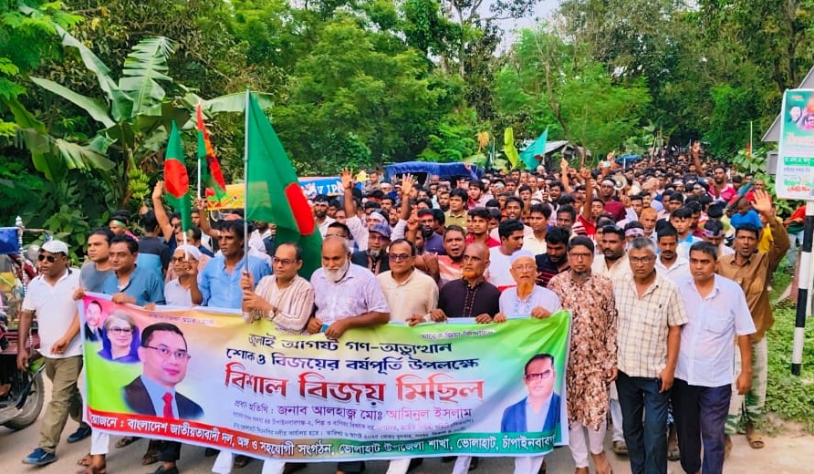 স্টাফ রিপোর্টার: চাঁপাইনবাবগঞ্জ জেলার ভোলাহাট উপজেলা বিএনপি ও অঙ্গ সহযোগী সংগঠনের আয়োজনে বিশাল বিজয় মিছিল ও পথসভা অনুষ্ঠিত হয়। বুধবার (৬ আগষ্ট) বিকেলে উপজেলার মেডিকেল মোড়স্থ কলেজ গেট সংলগ্ন নিজস্ব কার্যালয় থেকে কেন্দ্রীয় বিএনপির শিল্প ও বানিজ্য বিষয়ক সম্পাদক ও সাবেক সংসদ সদস্য আলহাজ্ব মো. আমিনুল ইসলামের নেতৃত্বে একটি বিশাল বিজয় মিছিল বের হয়ে প্রধান প্রধান সড়ক প্রদক্ষিণ করে উপজেলা পরিষদ উত্তর গেটে শেষ হয়ে পথসভা অনুষ্ঠিত হয়।