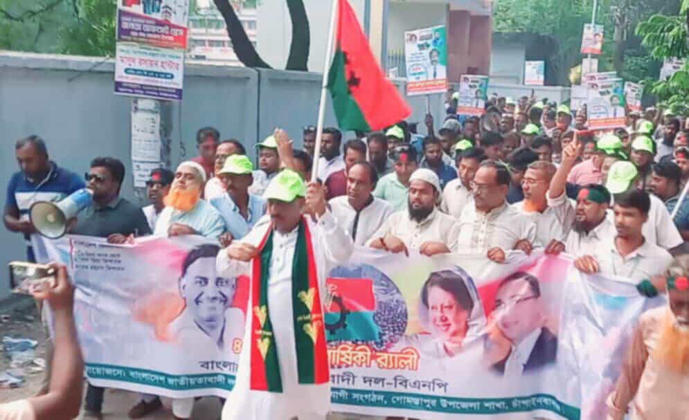 ব্যুরো প্রধান,গোমস্তাপুর:৪৪-চাঁপাইনবাবগঞ্জ-২ আসনের বিএনপির দলীয় মনোনয়ন প্রত্যাশী ও চাঁপাইনবাবগঞ্জ জেলা বিএনপির সাবেক সাংগঠনিক সম্পাদক আলহাজ্ব আব্দুস সালাম তুহিনের উদ্যোগে গোমস্তাপুরে বিএনপির ৪৭তম প্রতিষ্ঠাবার্ষিকী পালন করা হয়েছে। এ উপলক্ষে বৃহস্পতিবার বিকেলে একটি বর্ণাঢ্য র্যালি ও পথসভা অনুষ্ঠিত হয়।