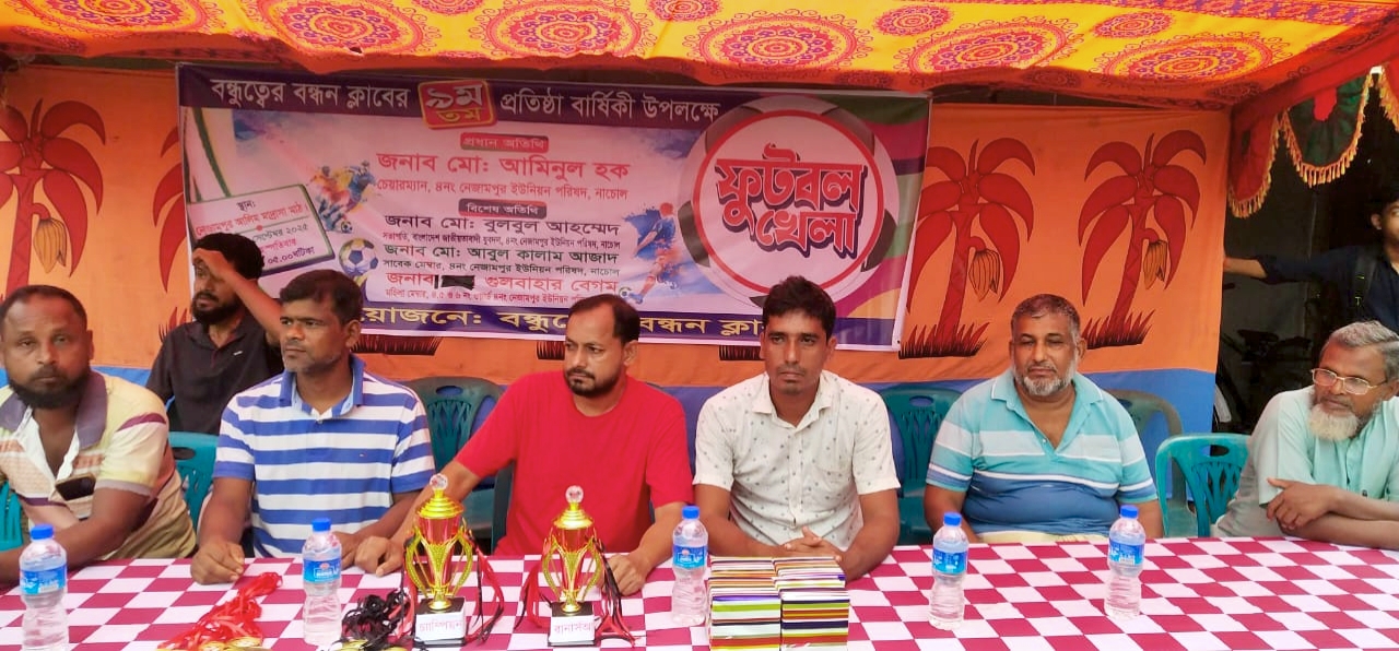 মোঃ মনিরুল ইসলাম, নাচোল: চাঁপাইনবাবগঞ্জের নাচোল উপজেলার বন্ধুত্বের বন্ধন ক্লাবের ৯ম প্রতিষ্ঠা বার্ষিকী উপলক্ষে এক প্রীতি ফুটবল ম্যাচ অনুষ্ঠিত হয়েছে।