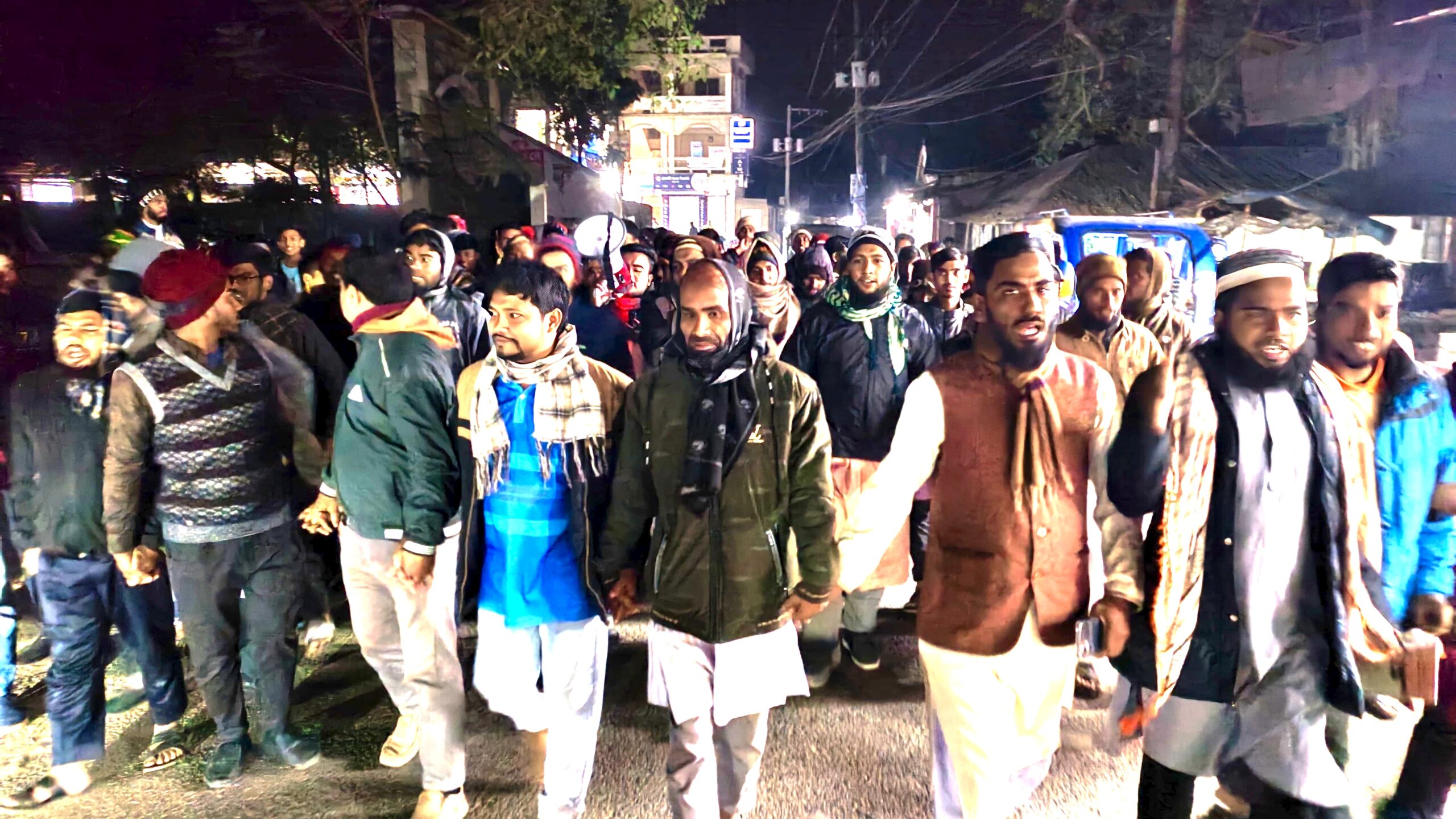 স্টাফ রিপোর্টার:ইনকিলাব মঞ্চের সভাপতি শরীফ ওসমান হাদীর উপর হামলার প্রতিবাদে চাঁপাইনবাবগঞ্জের ভোলাহাট উপজেলায় বিক্ষোভ মিছিল করেছে ইসলামী ছাত্রশিবির। শুক্রবার (১২ ডিসেম্বর) রাত ৮টার দিকে উপজেলার কলেজ মোড়ে উপজেলা ছাত্রশিবিরের উদ্যোগে ‘জুলাই যোদ্ধা’ হাদীর ওপর হামলার প্রতিবাদে বিক্ষোভ মিছিল বের হয়। ভোলাহাট মোহবুল্লাহ কলেজ গেট থেকে শুরু হয়ে মিছিলটি প্রধান প্রধান সড়ক প্রদক্ষিণ শেষে চৌরাস্তার মোড়ে এসে সংক্ষিপ্ত সমাবেশের মাধ্যমে শেষ হয়। সমাবেশে বক্তব্য রাখেন , চাঁপাইনবাবগঞ্জ জেলা পূর্বের সেক্রেটারি মো. আব্দুল্লাহ, ভোলাহাট পশ্চিম শাখার সভাপতি মো. সালাউদ্দিন আইয়ুবী এবং পূর্ব শাখার সভাপতি মো. নাজিমুদ্দিন।