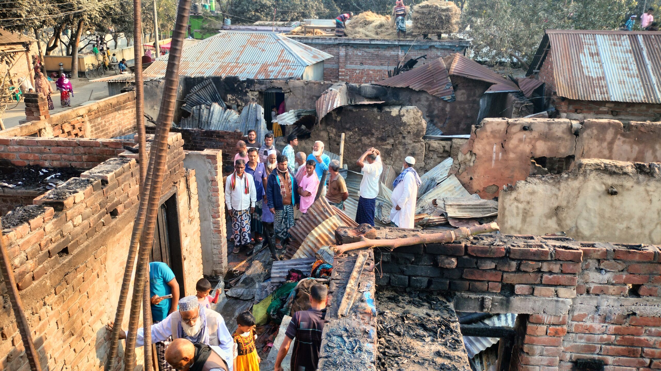 ক্ষতিগ্রস্ত জিয়াউরের বড় ভাই রফিকুল ইসলাম বলেন, জিয়াউর ব্যবসার নগদ প্রায় ১০ লাখ টাকা অপর ভাই তারা ঋণের দেড় লাখ ও ঢাকা থেকে কাজ করে নগদ ৫০ হাজার টাকা নিয়ে এসেছিল বাড়ি করার জন্য কিন্তু সবগুলোই পুড়ে নিঃস্ব হয়ে গেছে। সব মিলিয়ে চার পরিবারের প্রায় অর্ধলক্ষাধিক টাকার ক্ষয়ক্ষতি হয়েছে বলে প্রাথমিকভাবে ধারণা করছেন ভুক্তভোগী পরিবারগুলো। এদিকে ফায়ার সার্ভিসের স্টিম লিডার স্টেশন অফিসার ( ভারপ্রাপ্ত) শ্রীকৃষ্ণ প্রসাদ তলাপাত্র বলেন, আগুনের সূত্রপাত বৈদ্যুতিক শক সার্কিট থেকে হয়েছে। তিনি বলেন, প্রাথমিক ভাবে ক্ষয়ক্ষতির পরিমাণ ৯ লাখ ধারনা করা হচ্ছে এবং উদ্ধার করা হয়েছে ১৫ লাখ টাকা। খবর পেয়ে স্থানীয় জামায়াত নেতারা ঘটনাস্থলে গিয়ে ভুক্তভোগী পরিবারগুলোকে শান্তনা দেন।