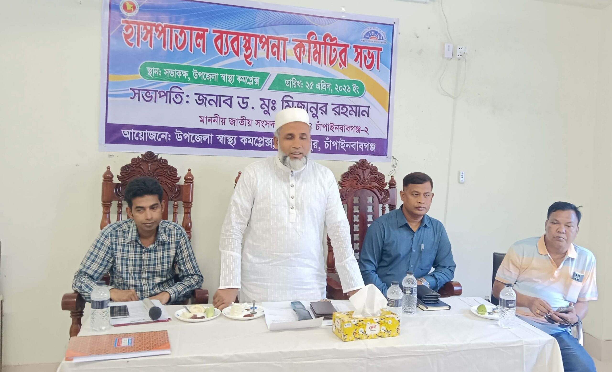 ব্যুরো প্রধান,গোমস্তাপুর: গোমস্তাপুর উপজেলা স্বাস্থ্য কমপ্লেক্সে হাসপাতাল ব্যবস্থাপনা কমিটির সভা অনুষ্ঠিত হয়। শনিবার সকাল এগারোটার আয়োজিত সভায় সভাপতিত্ব করেন চাঁপাই নবাবগজ ০২ আসনের সংসদ সদস্য ড.মুঃ মিজানুর রহমান। বক্তব্য রাখেন উপজেলা স্বাস্থ্য ও পরিবার পরিকল্পনা অফিসার ডাঃ আব্দুল হামিদ। অফিসার ইনচার্জ গোমস্তাপুর নুরে আলম, আর এম ও আব্দুস সামাদ, উপজেলা পরিবার পরিকল্পনা অফিসার ভারপ্রাপ্ত তারেক আব্দুল্লাহ,আলিনগর ইউনিয়ন পরিষদের চেয়ারম্যান আবুল কাসেম মোহাম্মদ মাসুম, উপজেলা প্রেসক্লাব সভাপতি আতিকুল ইসলাম আজম, রহনপুর রিপোর্টাস ক্লাব সভাপতি নাহিদ ইসলাম, গোমস্তাপুর স্বাধীন প্রেসক্লাব সভাপতি আলাউদ্দিন পারভেজ, গোমস্তাপুর উপজেলা প্রেসক্লাব সভাপতি নুর মোহাম্মদ, গোমস্তাপুর স্মাট প্রেসক্লাব সাধারণ সম্পাদক সামিরুল ইসলাম প্রমুখ। হাসপাতালের বিভিন্ন সমস্যা তুলে ধরা হয় এবং সমস্যার সমাধান ও হাসপাতাল পরিচালনার জন্য বেশ কিছু সিদ্ধান্ত গৃহীত হয় ।
